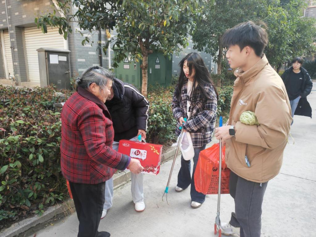 基础教育学院青年志愿者们手持扫把、钳子、垃圾袋等工具,在河畔花园小区花坛、街口巷道、居民楼窗户等处捡拾纸屑、果皮、烟头等各类垃圾。年若少时宜敬老,尊老敬老是中华民族的传统美德,志愿者们围绕在老人身边,嘘寒问暖拉家常,了解老人们的饮食起居与身体情况,帮助他们搬运重物,普及养生健身常识,倡导科学健身知识。
