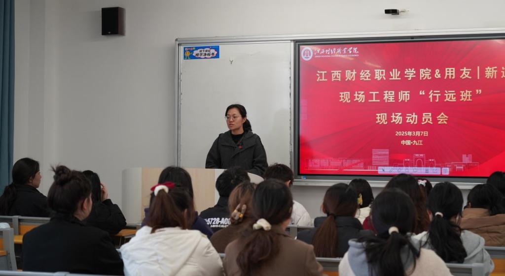 3月7日,学院举行本批第一期30名学员动员大会。会计学院分管副院长齐洁主持会议并发表动员讲话,强调了用友产业园(南昌)作为财经商贸类生产性实践基地的核心作用,要求学员在现场生产性实践中,深度参与用友YS项目,切实提升岗位实战能力。会议重点部署三项要求:一是强化安全意识,严守企业管理制度,全程关注个人安全;二是践行“工学交替”培养模式,在400余小时企业实践中完成岗位能力进阶;三是依托“双导师制”保障机制,由校企导师全程指导学员职业发展。动员会还针对实践课程安排、园区工作生活等学生关切问题进行了专项答疑。