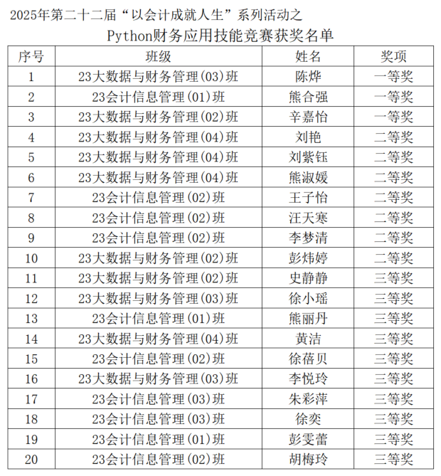 融合编程思维与财会专业素养的复合型能力,已成为适应企业数字化转型、推动业财深度融合的重要基础能力,此次比赛的顺利举行进一步推进了“以赛促教、以赛促研、以赛促建、以赛促改”的教学改革实践,对持续推动会计专业人才培养数字化转型、增强学生就业核心竞争力具有积极促进作用。