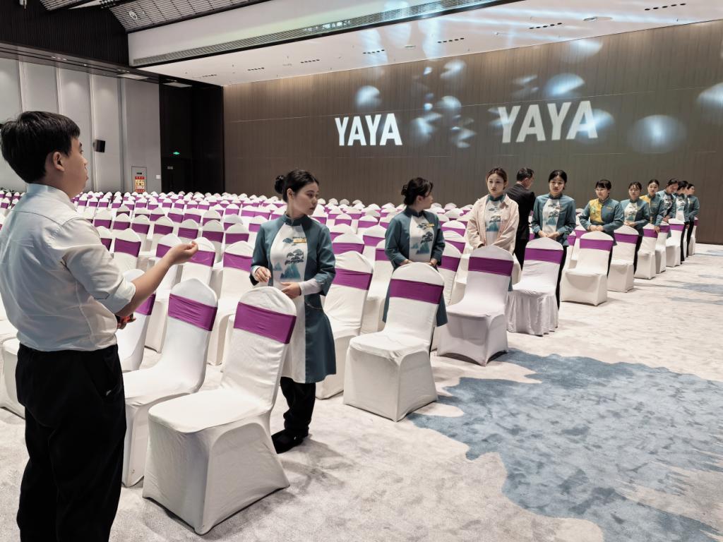 为深化产教融合,提升学生专业实践能力,4月20日—28日,bat365正版唯一官网文化旅游学院与庐山嘉豪淮海国际豪生酒店联合开展为期8天的社会实践活动。本次活动以服务鸭鸭集团2025全球战略生态伙伴峰会为契机,23级酒店管理、旅游管理专业38名学生参与酒店会务服务,通过“培训+实践”模式,助力学生锤炼职业技能,拓展行业视野。