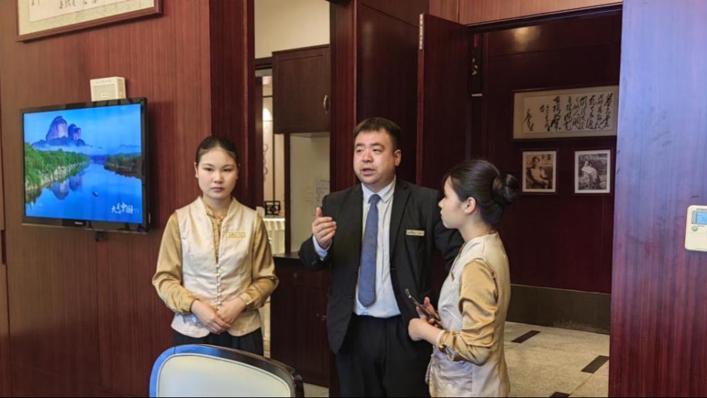 为精准匹配高规格会务需求,文化旅游学院深度联动校企合作单位庐山嘉豪淮海国际豪生酒店,组建“学生-员工”联合服务梯队,全面覆盖前厅礼宾、宴会统筹、客房保障等全场景服务模块。在实践服务阶段,学院与企业导师团队提前开展专项研讨,以“酒店营销经费回扣”这一行业典型案例为切入点,深化学生对职业规范与作风建设的内涵认知,实现专业技能与职业素养双提升。