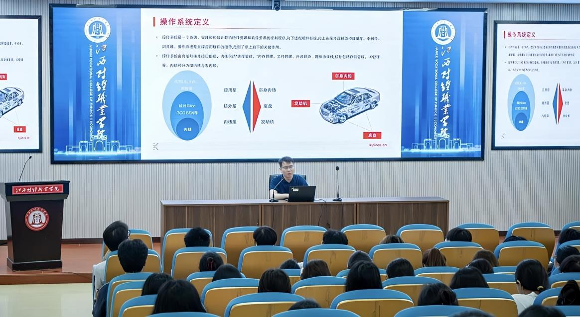 讲座过程中,夏宇经理围绕信创产业发展主线,从技术演进、产业生态、市场前景及职业规划四个维度展开分享。在“操作系统发展介绍”环节,他系统梳理了从传统操作系统到国产化自主可控技术的迭代历程,重点介绍了麒麟操作系统(KylinOS)在安全性、兼容性和稳定性上的技术优势,以及在政务、金融、能源等关键领域的应用案例。