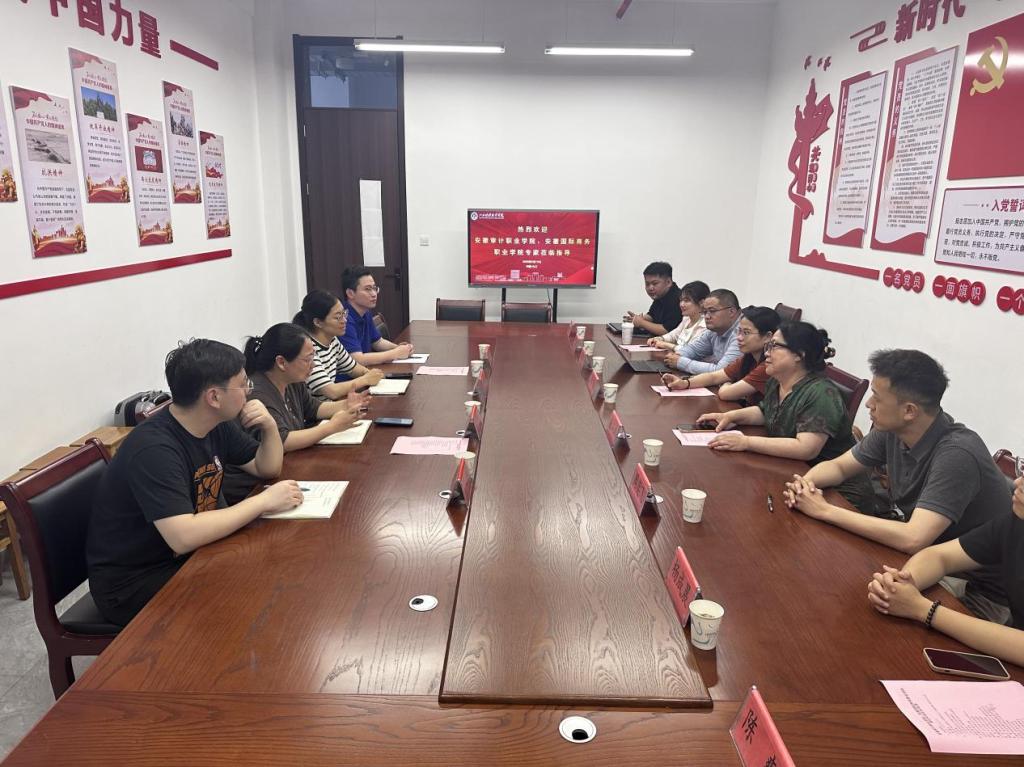 5月19日,安徽审计职业学院会计专业带头人徐庆林、安徽国际商务职业学院会计教研室主任唐韵一行到会计学院开展调研交流,双方围绕YS顾问班办学模式及成效、产学研创会计实训室建设、现场工程师项目、世界职业院校技能大赛等内容展开深入探讨。会计学院院长万凯、副院长齐洁、党政办公室主任曾越、YS项目教师代表叶晖在洙泗学馆B308会议室接待。