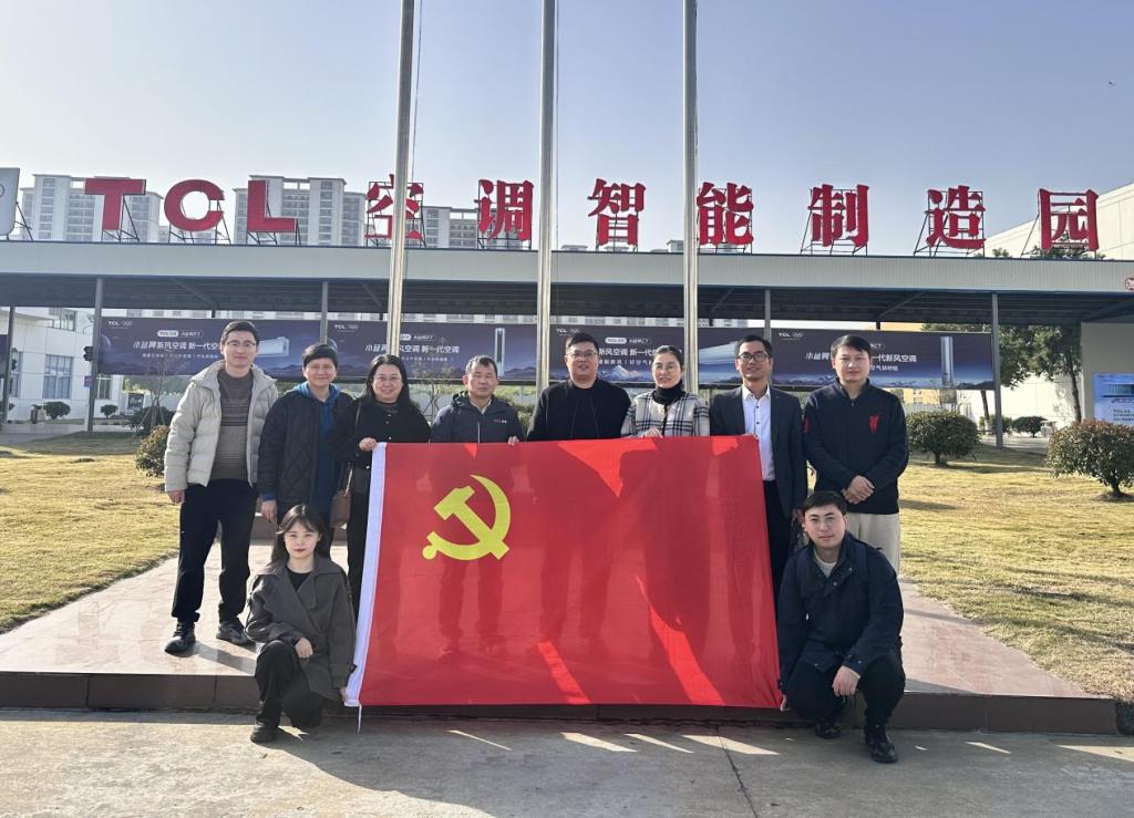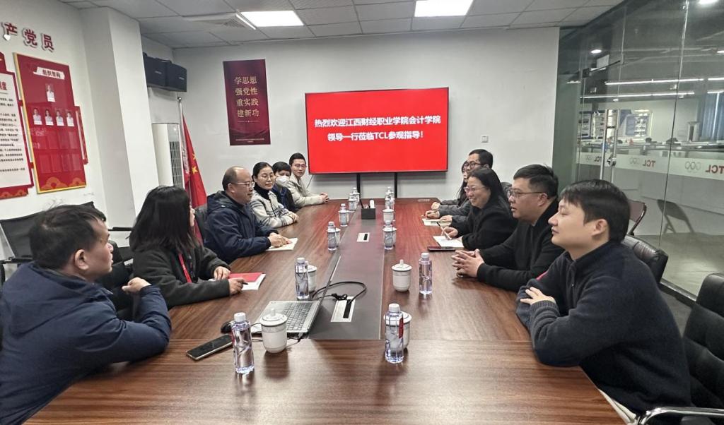 张洪引领万凯一行参观TCL空调智能制造工厂,详细介绍数智化运营中心对物料、设备、能耗进行的实时监控调度,并就成本核算、智能排产、数据治理等数智财务技能需求展开交流。随后,双方移至公司党员活动室,就校企发展历史、取得成果,支部党建成效以及财经类人才共育、实习就业等方面进行了深入沟通。