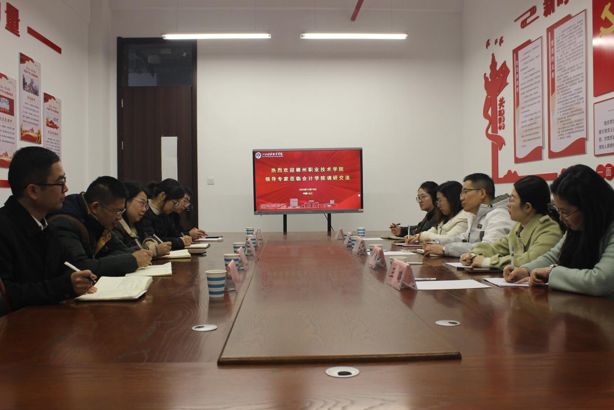 12月16日,郴州职业技术学院财政经济学院院长刘小海一行到访bat365会计学院进行交流,会计学院院长万凯,副院长谭玉林、齐洁,及学院办公室、教研室主任代表在洙泗学馆B308会议室接待。