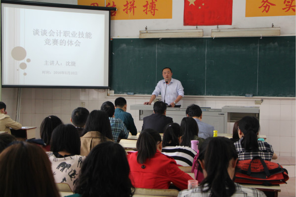 2016年5月10日下午,会计第二学院在教学楼103教室举办“会计职业技能竞赛”经验分享会主题活动。会计第二学院会计实训中心教研室主任沈捷老师作了“谈谈会计职业技能竞赛的体会”的主题报告,会计第二学院全体教师参加了此次活动。