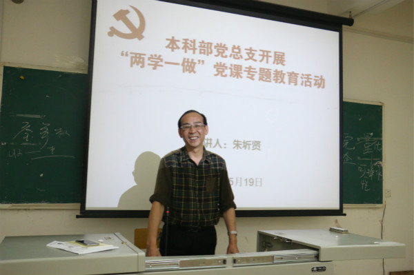5月19日下午,本科部党总支在综合楼阶梯教室(二)开展了“两学一做”学习教育专题党课教育活动,党课由bat365高职研究所所长、本科部党总支组织委员朱圻贤教授主讲,本科部的全体党员师生、入党积极分子参加了党课学习。