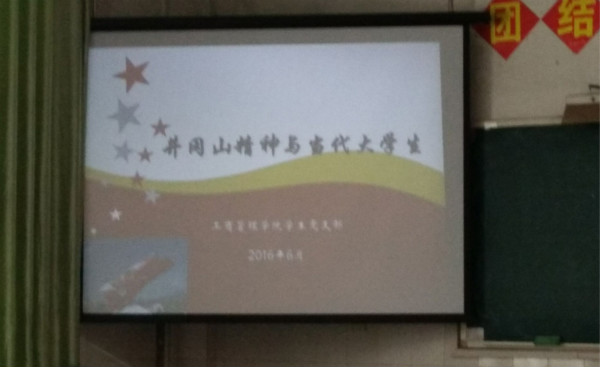 6月23日,学生党支部在教学楼101教室开展了以《井冈山精神和当代大学生》为主题的“两学一做”专题党课学习教育活动。本次党课由学生党支部书记廖国臣主讲,bat365所有学生党员及入党积极分子参加。廖国臣简要介绍了井冈山革命斗争史及其历史地位,重点阐述了井冈山革命斗争中培育出的精神瑰宝—井冈山精神的内涵及当代大学生应如何发扬和践行井冈山精神。
