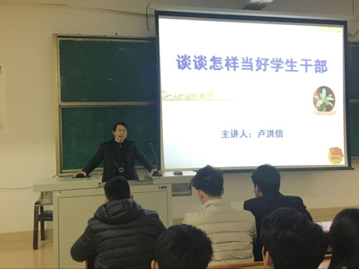 为强化学生工作队伍建设,进一步提升会计第一学院学生干部的综合素质和工作能力,指导学生干部成长成才,11月23日下午4:30在综阶六教室,会计第一学院党总支书记卢洪信教授应邀给本院学生干部作了一场题为《谈谈怎样当好学生干部》的专题教育培训。会计第一学院团总支书记张庆老师及200余名院学生干部共同聆听了此次讲座。