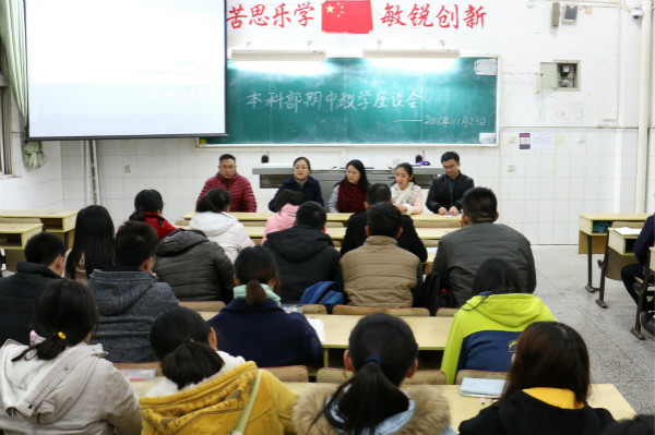 为更好了解本科生学习及思想动态,着力提升本科教学管理与服务水平,2016年11月23日19:00,本科部在教学楼215召开了2016-2017学年第一学期期中教学座谈会。本科部全体老师与14、15、16级48名学生代表共同参加了此次活动。