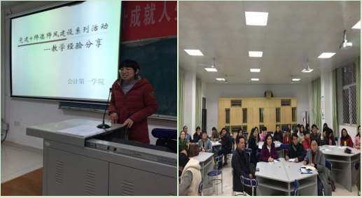 为进一步推动党建工作与学院中心工作深度融合,让全院教师深度了解职业技能竞赛的类型与发展趋势,加深职业技能竞赛对教学改革的推进,强化专业教师队伍尤其是会计信息化教师队伍的建设,会计第一学院于12月20日下午16:30分在东区教学楼举办了第三场“党建+师德师风建设”专题讲座。讲座由副院长万凯教授主持,2016年国赛优秀指导老师唐琳老师主讲,会计第一学院全体教师和部分外聘教师参加了此次讲座。
