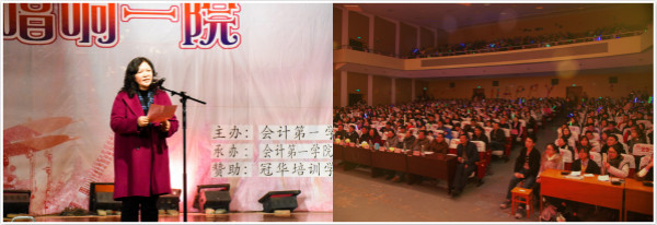 在晚会节目正式上演之前会计第一学院院长柯于珍教授发表了热情洋溢的新年致辞。柯院长向全体师生致以新年的祝福,满怀深情地回顾了会计第一学院2016年所取得的显著工作成就,对2017年提出了新的期待和展望。