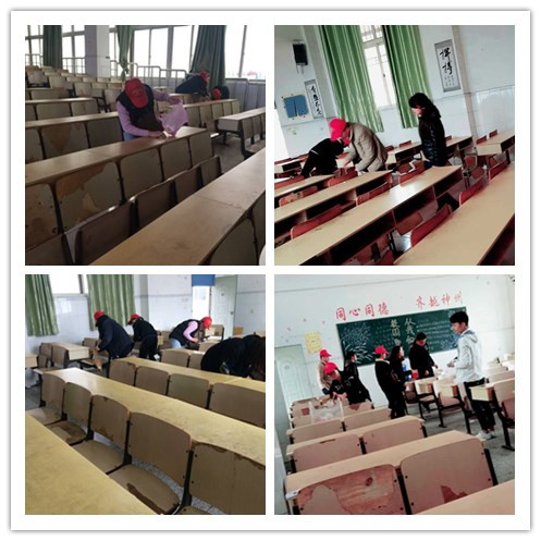 教学楼是学习的主阵地,也是育人的中心区。中午12点,同学们准时在教学楼东门集合,然后兵分两路,分头对教学楼南北区进行逐层清理。在活动中,同学们不怕脏,不叫累,弯下腰,蹲下去,全面清扫了教室卫生,重点清理了抽屉垃圾。经过近两个小时的努力,同学们完成了教学楼的清扫。