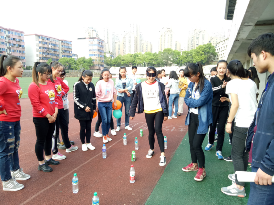 本次趣味运动会共设“无敌风火轮”、“地雷阵”、“背夹球”、“你比我猜”四个项目。以班级为单位,共有9支队伍参加。