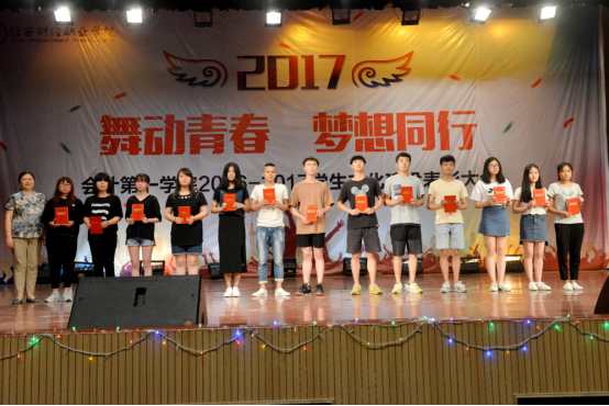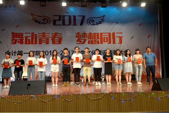 2017年5月26日晚,会计第一学院在bat365英才交流中心举办了“舞动青春,梦想同行”文艺演出暨2016——2017学年学生文化建设表彰大会,会场内充满了喜庆的气氛,洋溢着青年学子火热的激情,现场文艺节目使得表彰大会充满了欢庆气氛。