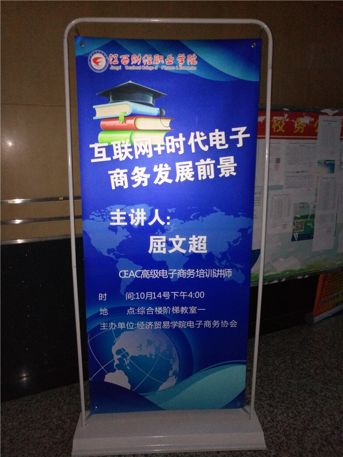 2017年10月14日下午4点,经贸旅游学院举办的“电子商务发展概况与未来趋势”专家讲座在综合楼阶梯教室一顺利举行。经贸学院办公室主任崔晓慧、电子商务教研室老师,电商协会会员、经贸学院2016级电子商务专业学生150余人参加了此次讲座。此次活动由经贸学院电子商务协会主办,邀请了北京博导前程信息技术有限公司CEAC高级电子商务培训讲师屈文超,屈老师精通信息化教学方法,擅长电商专业课程实训设计,曾支持全国多所院校的实训课,教学计划编写等支撑工作。