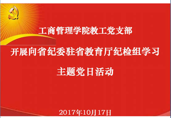 工商管理学院党总支书记胡红霞同志首先宣读了《关于开展向省纪委驻省教育厅纪检组学习主题党日活动的通知》,强调了主题党日活动的重要意义,解读了驻厅纪检组先进事迹的精神内涵,要求全体党员以先进为镜,以“忠诚、干净、担当”为标尺,立足岗位奉献,争当先锋标兵,并结合“两学一做”学习教育常态化制度化的要求,布置了形式多样的学习活动安排。