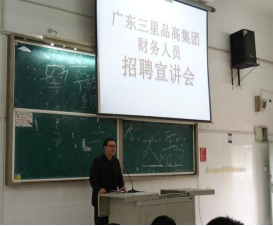为及时推进bat3652018届毕业生就业工作,2017年11月7日下午16:30会计第一学院特邀广东三星品高集团再次来我院举行专场招聘会,这是继前年bat365与广东三星品高集团签订校企合作协议后,该集团第三次来bat365在应届毕业生中招聘财务工作人员。