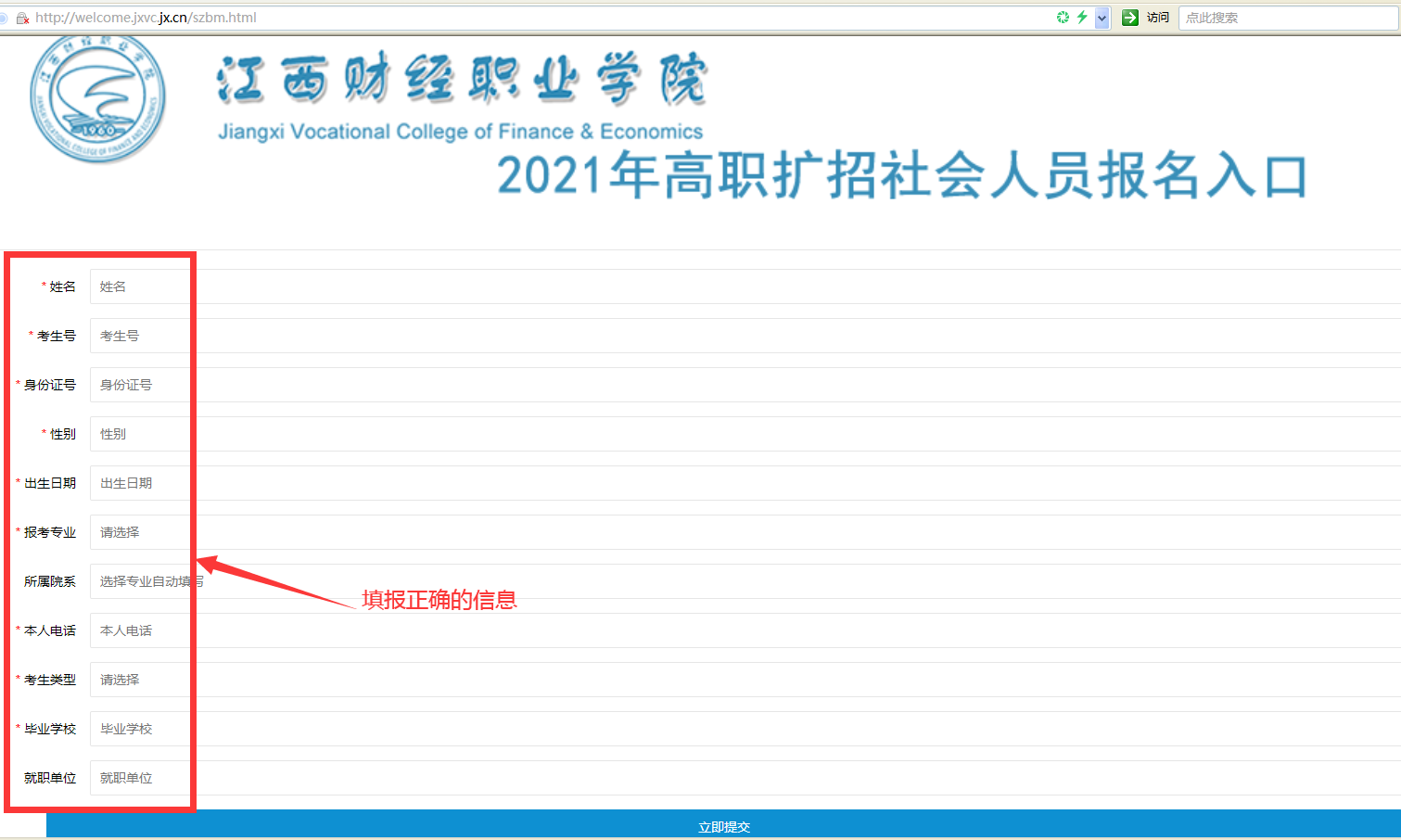 第四步、填写完成正确的信息,点击“立即提交”