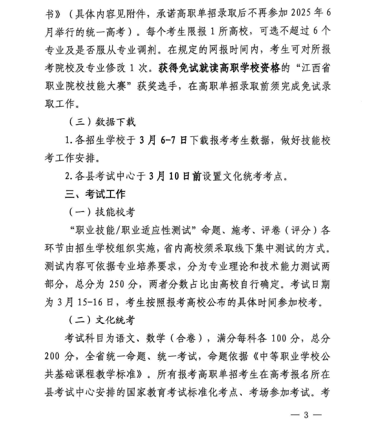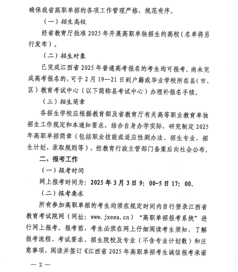 关于做好全省2025年高等职业教育单独招生考试工作的通知