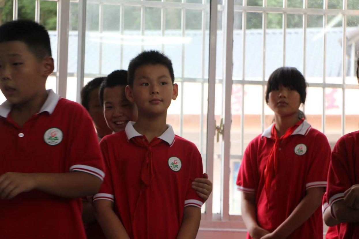 图为学生们向队员害羞微笑。中国青年网通讯员 龚尔洁 摄