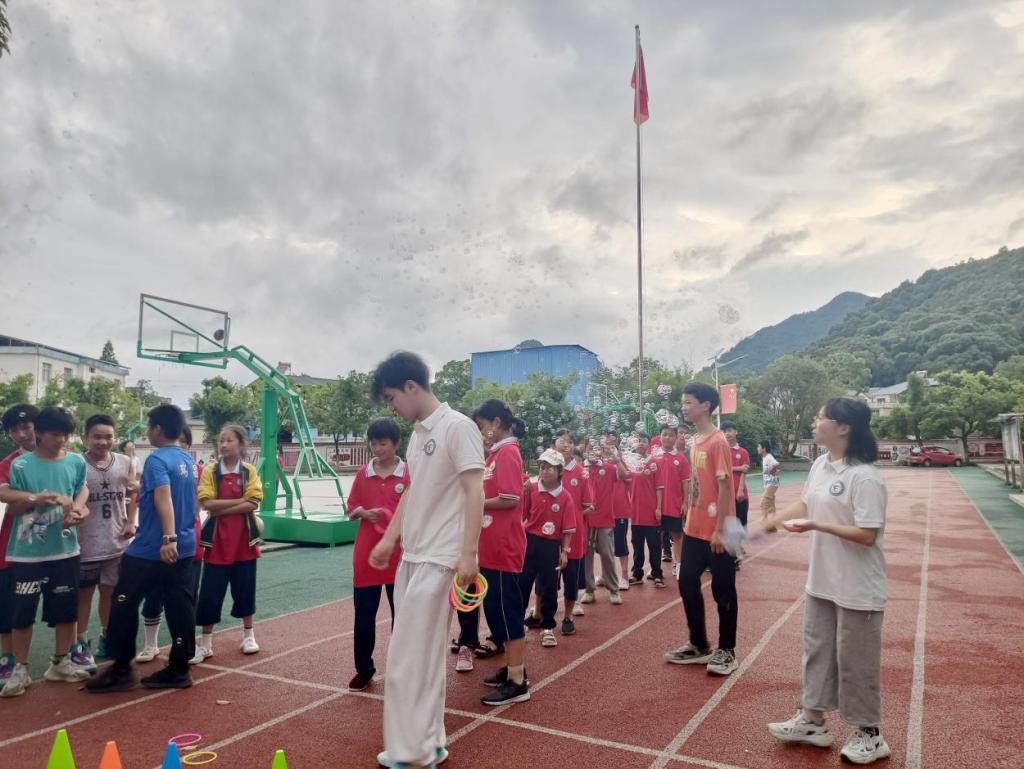 图为青春筑梦队与学生们做体育运动。中国青年网通讯员 龚尔洁 摄