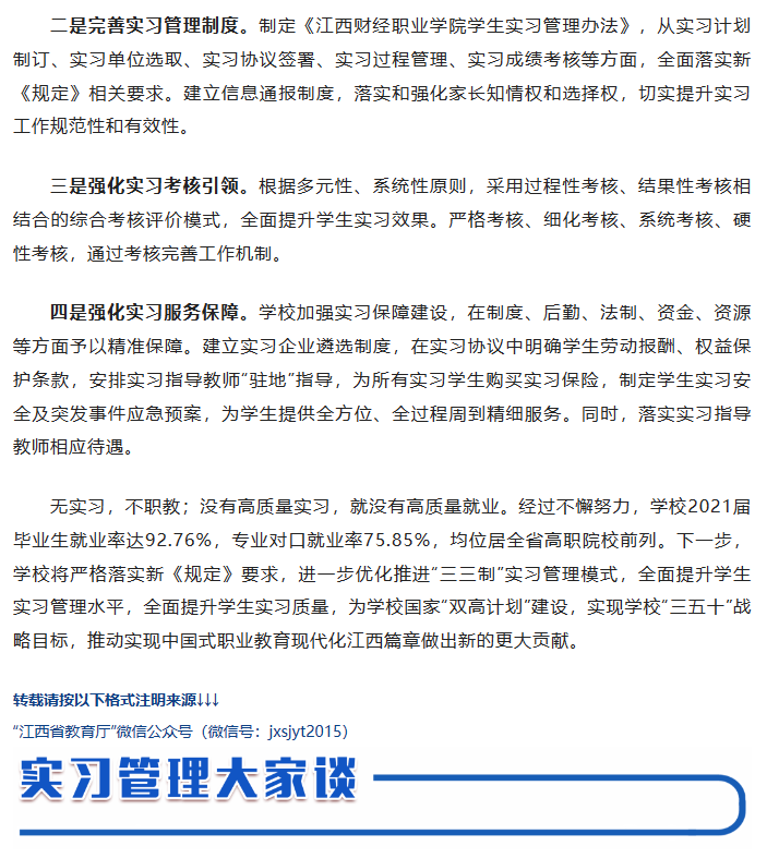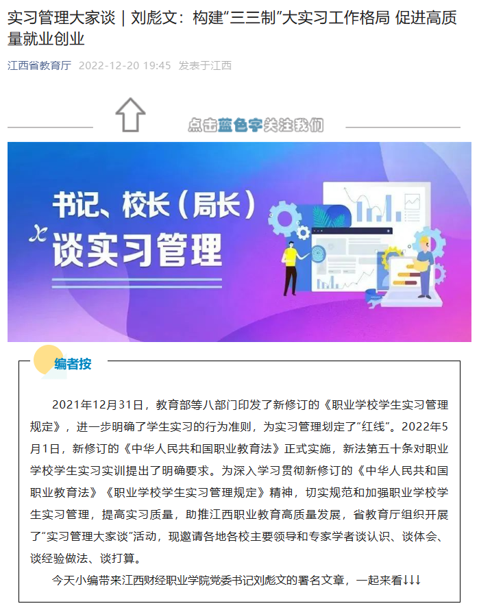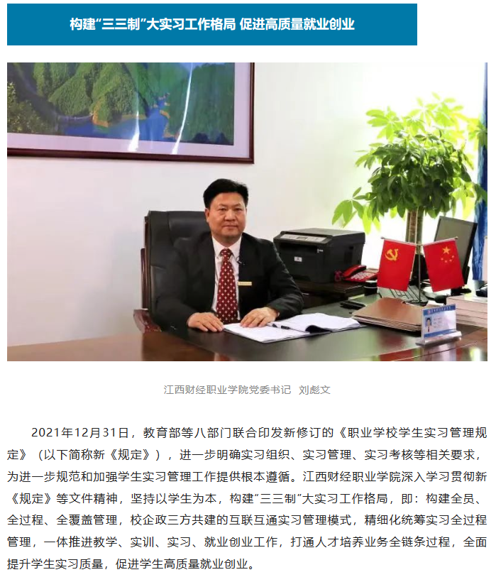 (江西省教育厅)实习管理大家谈|刘彪文:构建“三三制”大实习工作格局 促进高质量就业创业