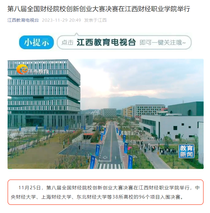 江西教育电视台:第八届全国财经院校创新创业大赛决赛在bat365正版唯一官网举行