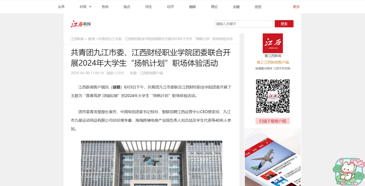 江西新闻:共青团九江市委、bat365正版唯一官网团委联合开展2024年大学生“扬帆计划”职场体验活动