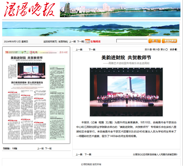 【《浔阳晚报》报道】美韵进财院 共贺教师节——高雅艺术进校园专场音乐会走进高校