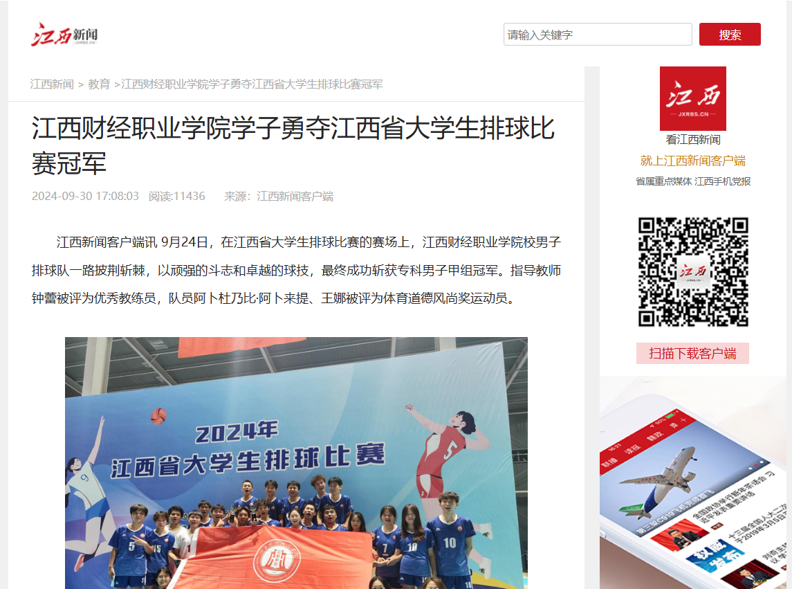 【江西新闻报道】bat365正版唯一官网学子勇夺江西省大学生排球比赛冠军