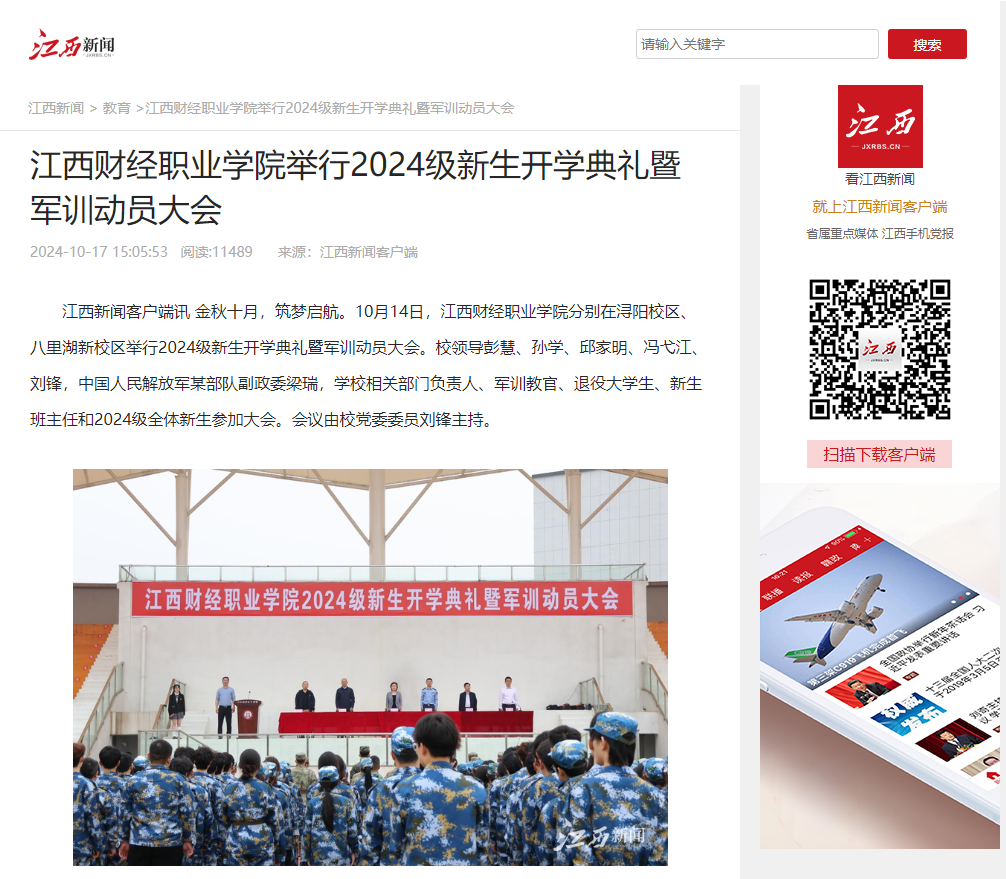 【江西新闻报道】bat365正版唯一官网举行2024级新生开学典礼暨军训动员大会