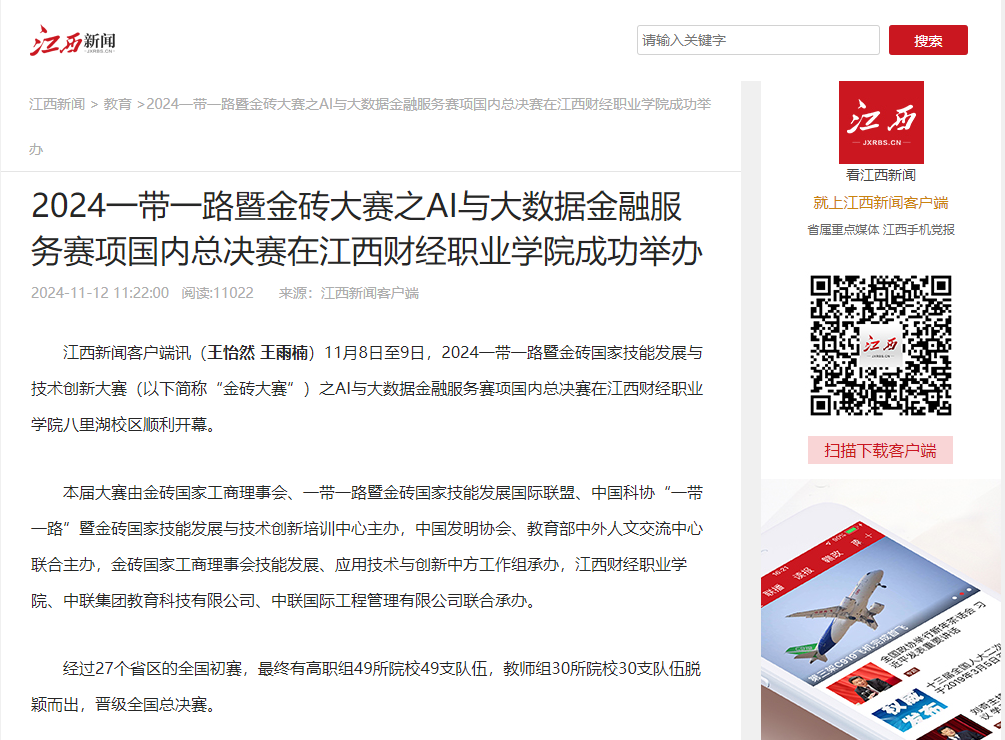 【江西新闻报道】2024一带一路暨金砖大赛之AI与大数据金融服务赛项国内总决赛在bat365正版唯一官网成功举办