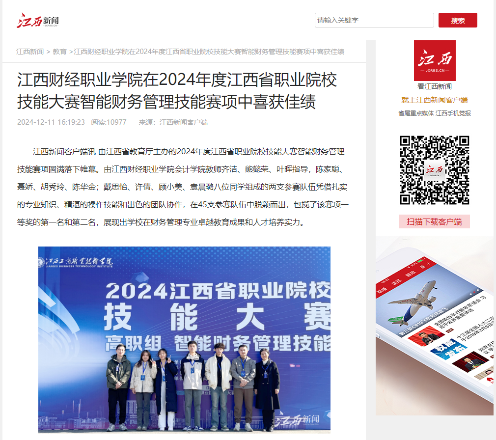 bat365正版唯一官网在2024年度江西省职业院校技能大赛智能财务管理技能赛项中喜获佳绩