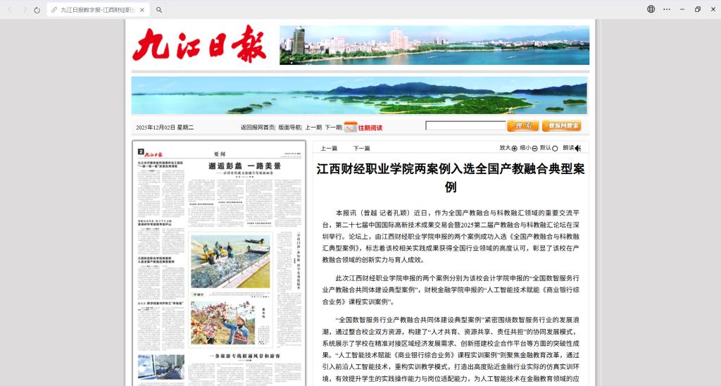 (九江日报)bat365正版唯一官网两案例入选全国产教融合典型案例