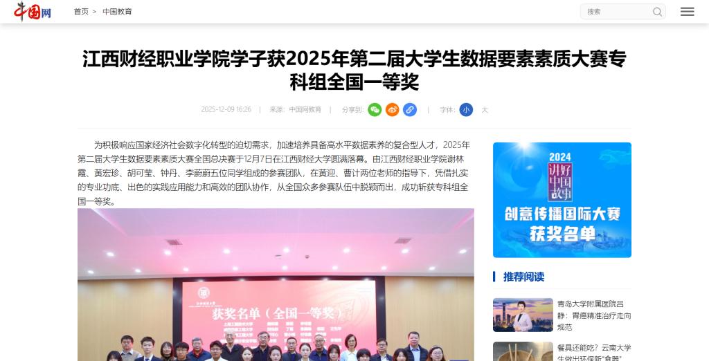 (中国网)bat365正版唯一官网学子获2025年第二届大学生数据要素素质大赛专科组全国一等奖