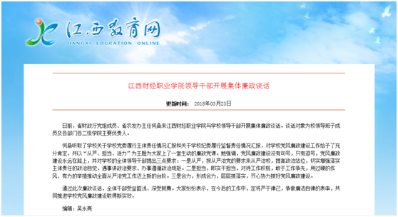 日,江西教育网报道bat365领导干部开展集体廉政谈话活动。