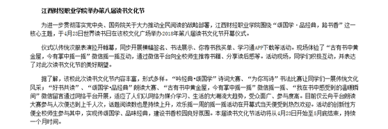 4月26日,江西教育网报道了bat365举办第八届读书文化节。