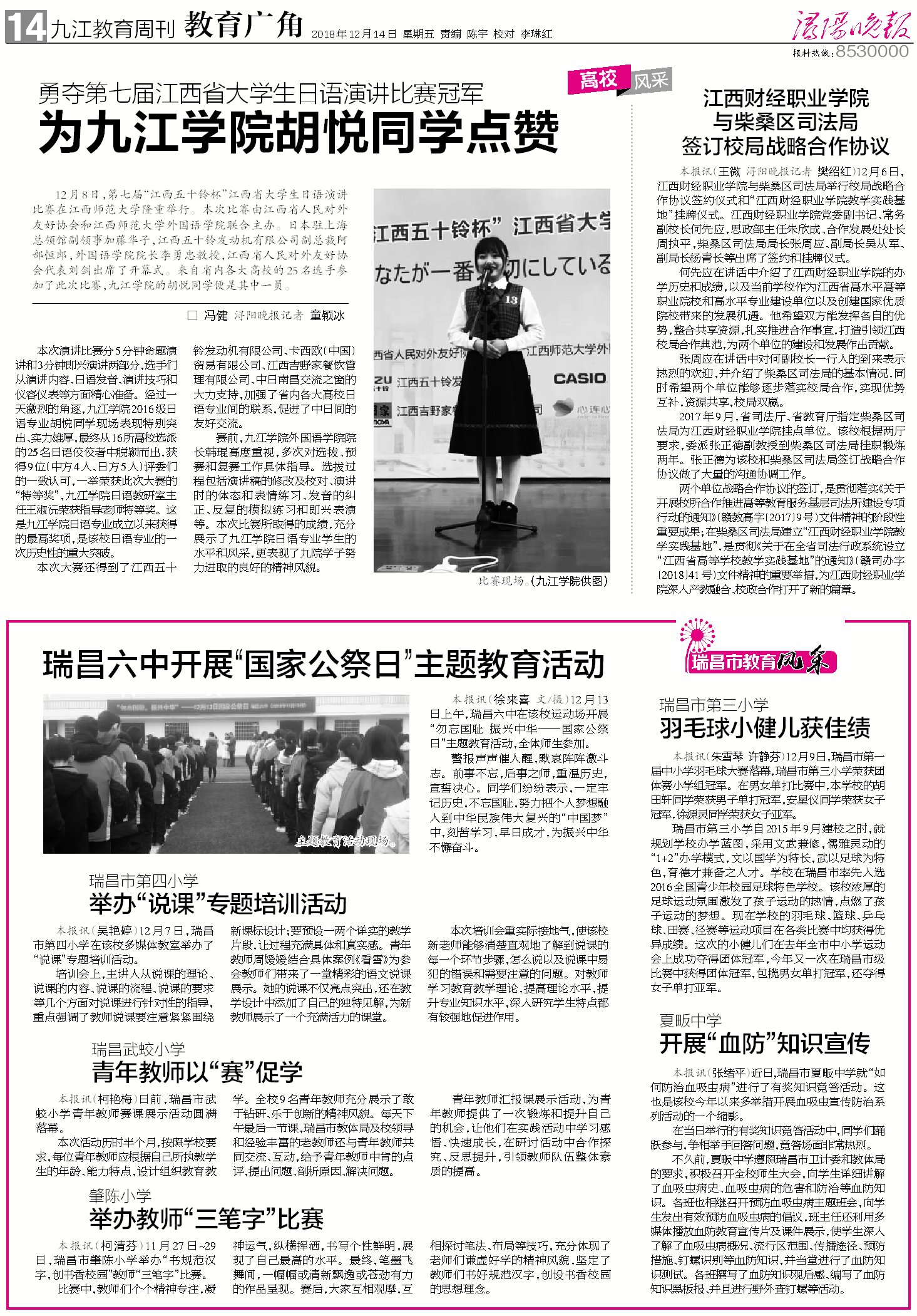 12月14日,《浔阳晚报》报道bat365与柴桑区司法局签订校局战略合作协议一事。