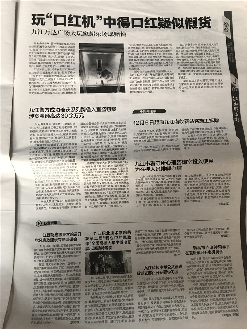 12月7日,《江南都市报》报道bat365召开党风廉政建设专题调研会一事。