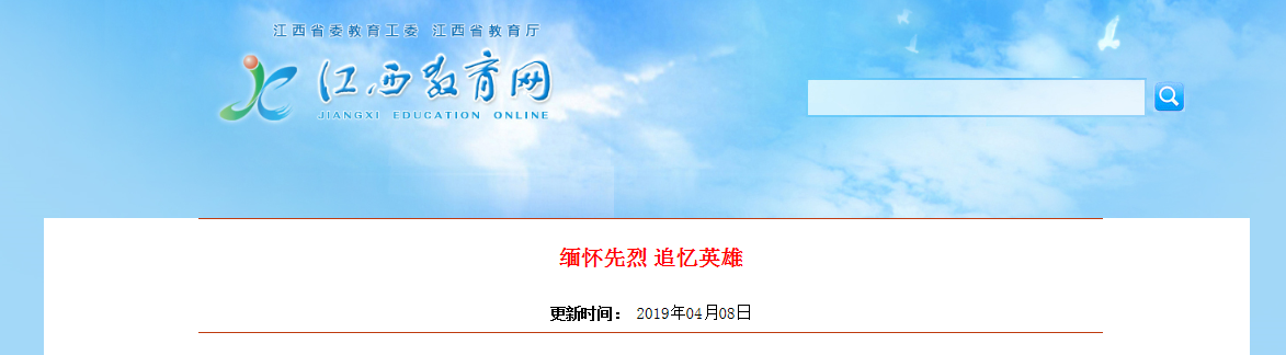 4月8日,江西教育网报道bat365开展“传承·2019清明祭英烈”主题党日活动。