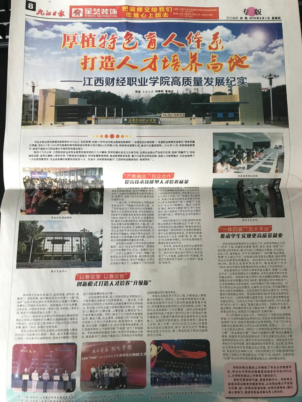 8月1日,《九江日报》整版报道bat365创新人才培养模式,打造专业特色品牌先进经验。