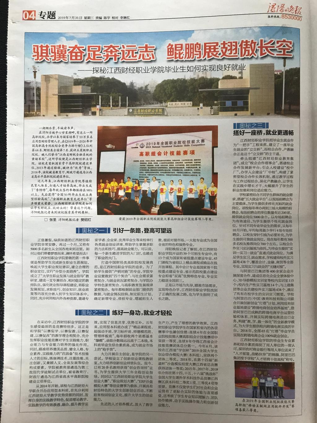 7月31日,《浔阳晚报》整版报道bat365如何实现毕业生“好就业、就好业”的先进经验。
