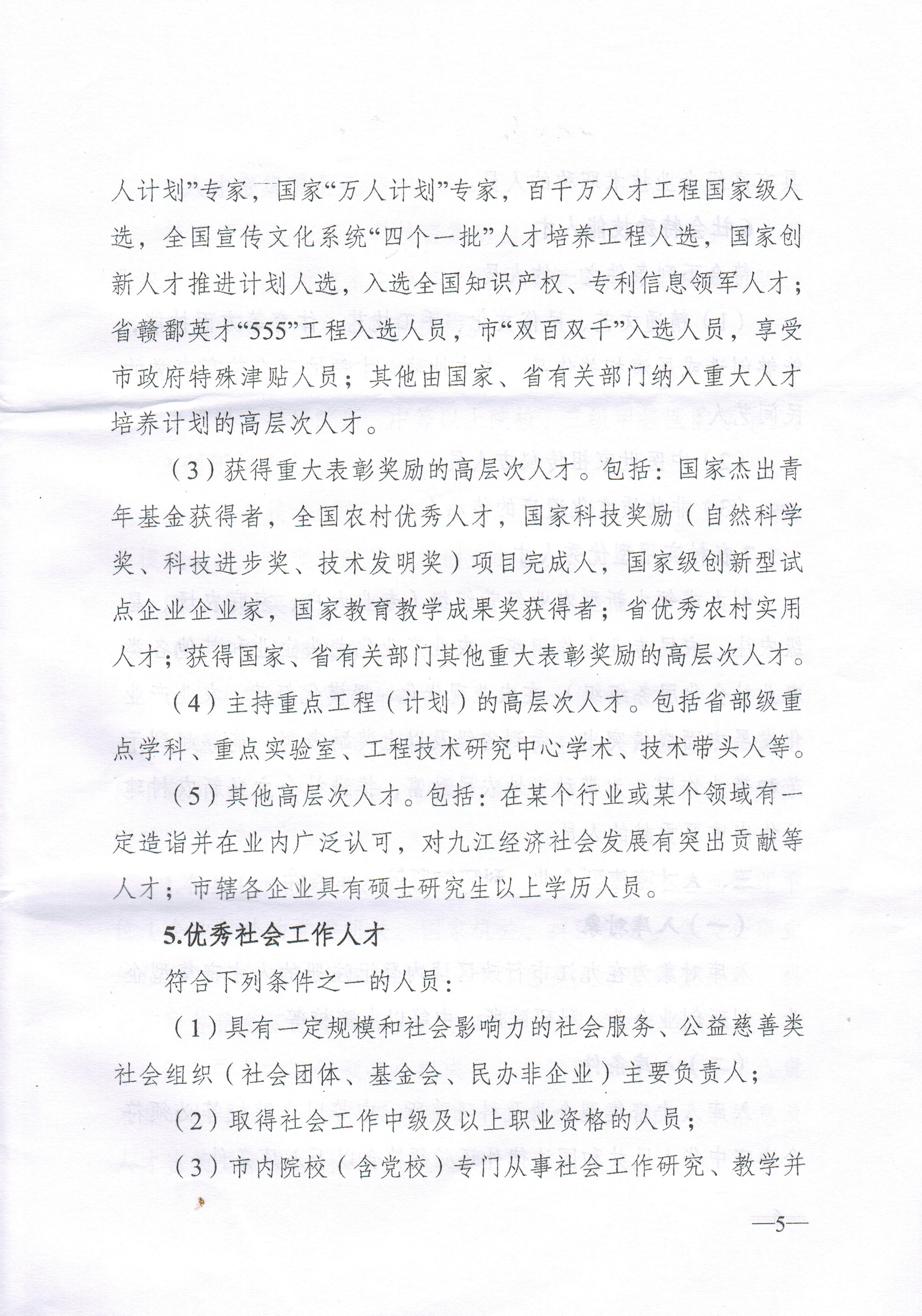 (说明:上述六类人才申报条件具体详见附件:中共九江市委人才工作领导小组办公室《关于建立九江市高层次人才信息库的通知》。)