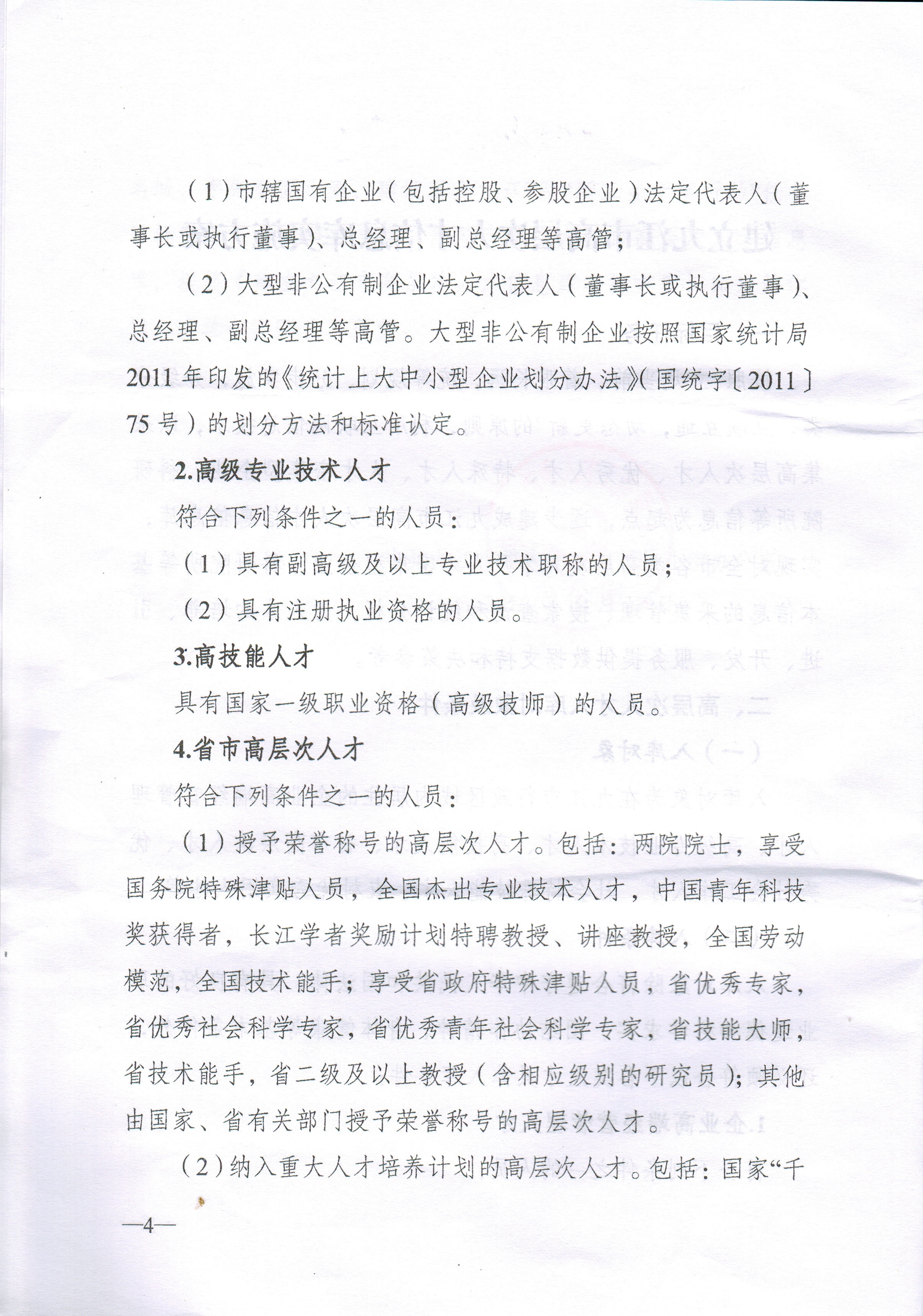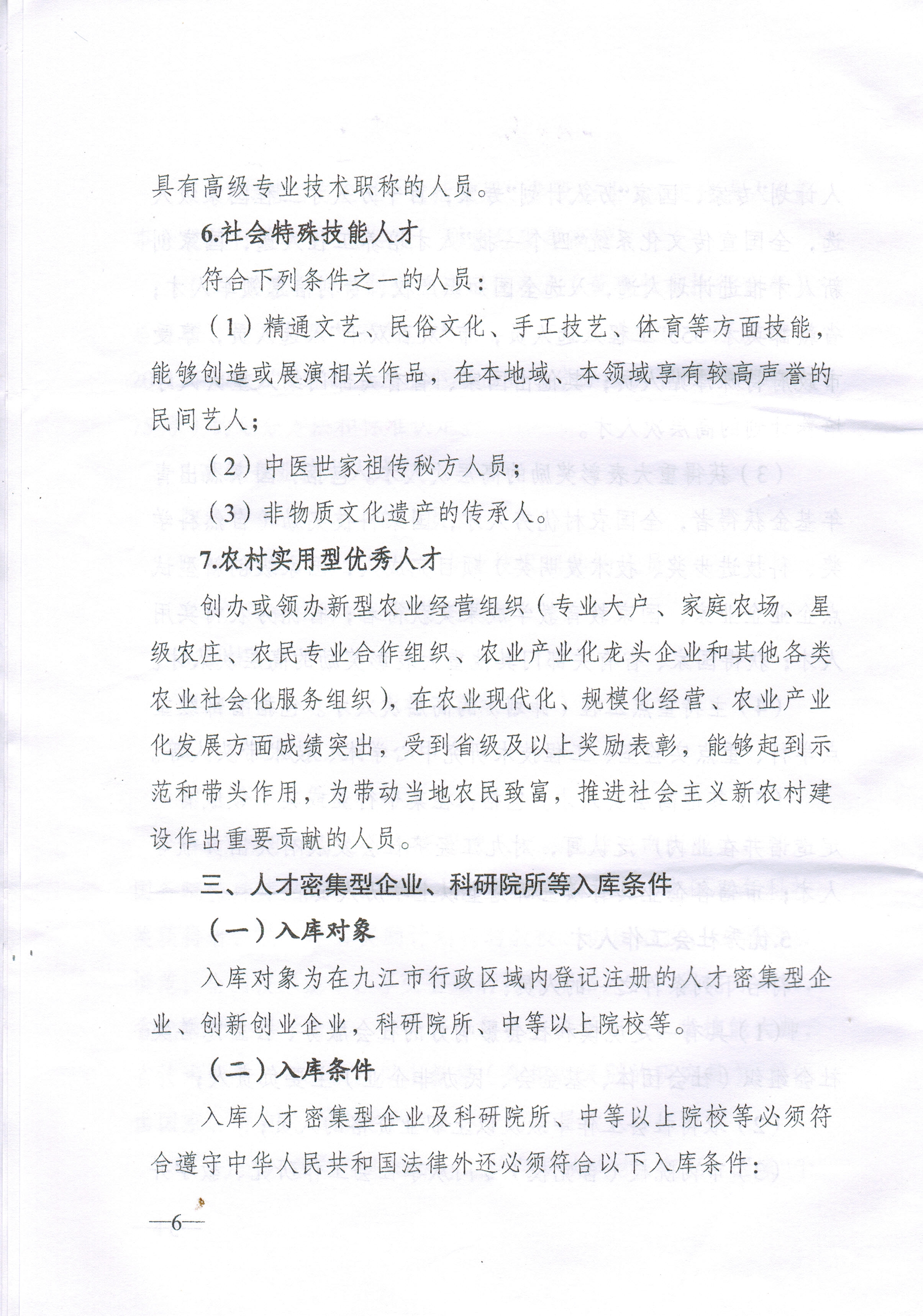 1.高级专业技术人才;2.高技能人才;3.省市高层次人才;4.优秀社会工作人才;5.社会特殊技能人才;6.农村实用型优秀人才