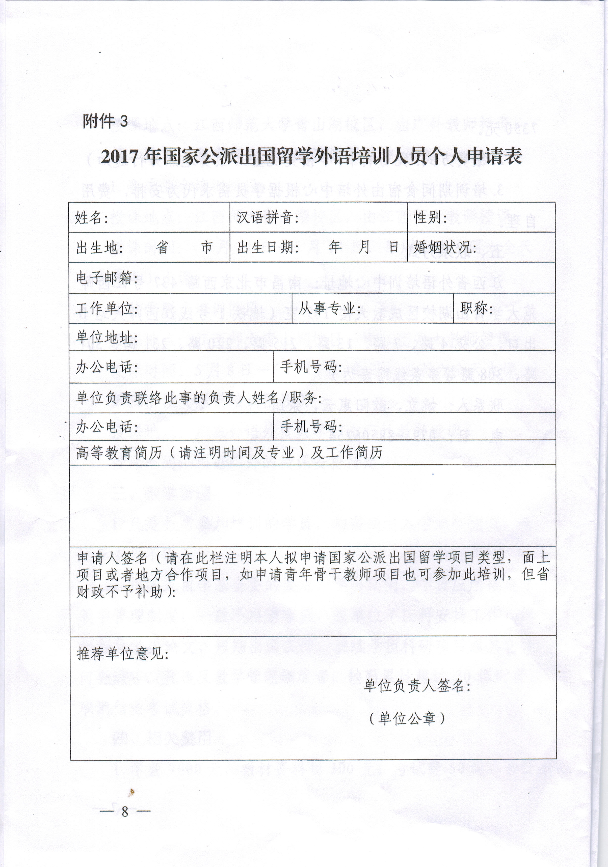 附件:2017年国家公派出国留学外语培训人员个人申请表.doc
