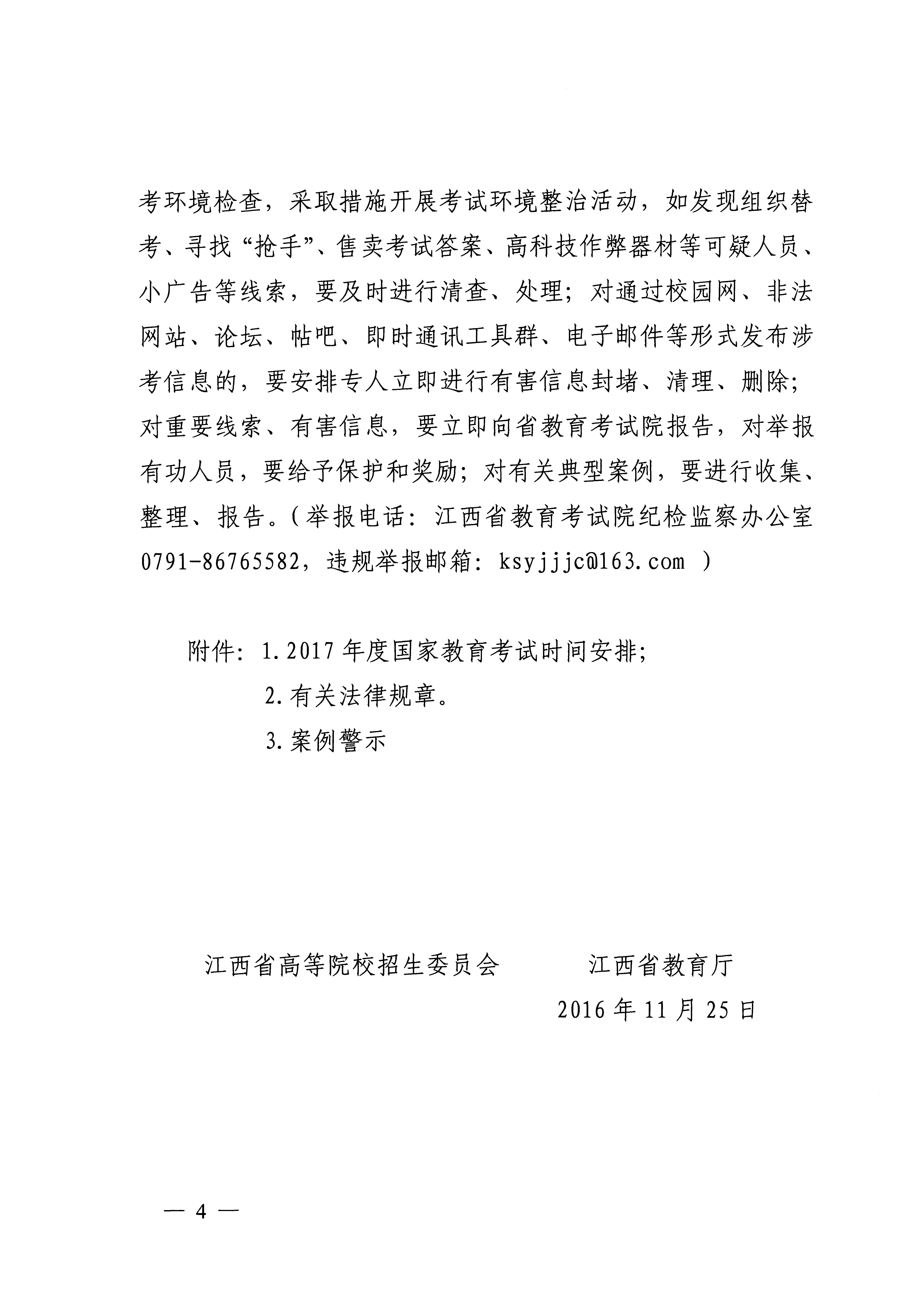 附件:江西省高等院校招生委员会和江西省教育厅《关于严防高校在校学生或在职教师参与国家教育考试作弊活动的通知》