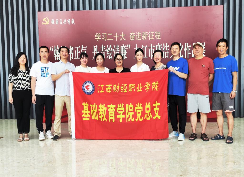 为学习贯彻习近平新时代中国特色社会主义思想,加强党员干部党风廉政教育,2023年7月7日,基础教育学院党总支组织党员参观“翰墨书正气,丹青绘清廉”九江市廉洁文化作品展,开展“建设廉洁文化,庆祝政治生日”主题党日活动。