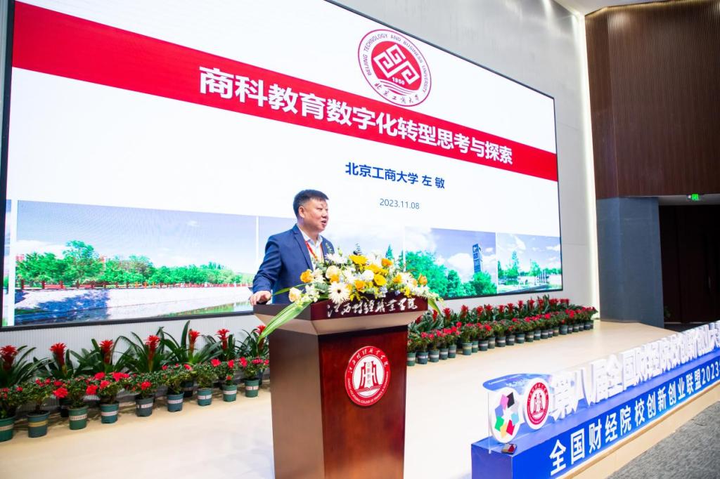 北京工商大学党委常委、副校长左敏教授结合国家政策、形势变化、发展趋势作了题为“商科教育数字化转型思考与探索”的报告。