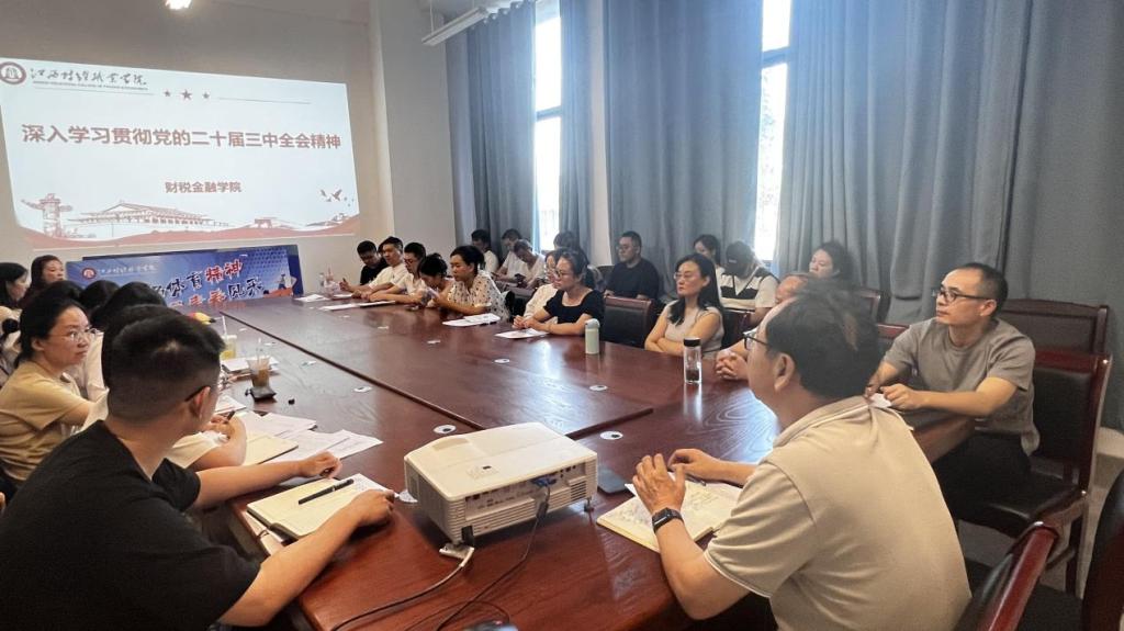9月4日下午,财税金融学院在八里湖校区洙泗学馆B101会议室举行专题学习会,传达并深入学习了党的二十届三中全会精神。本次会议由学院党总支副书记王怡然主持,学院全体教职工参加。